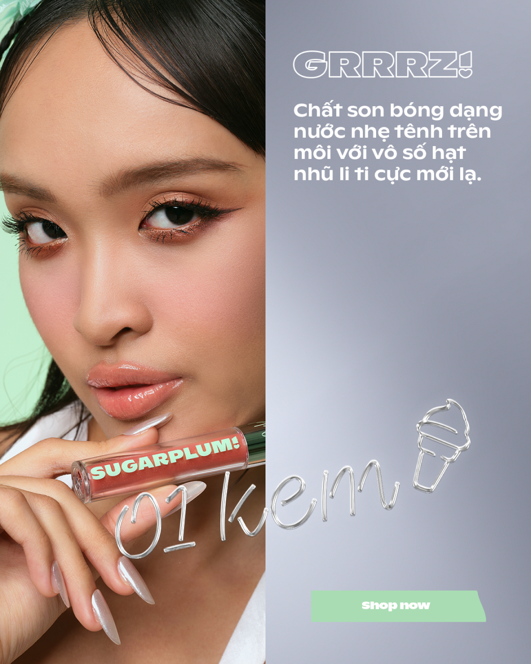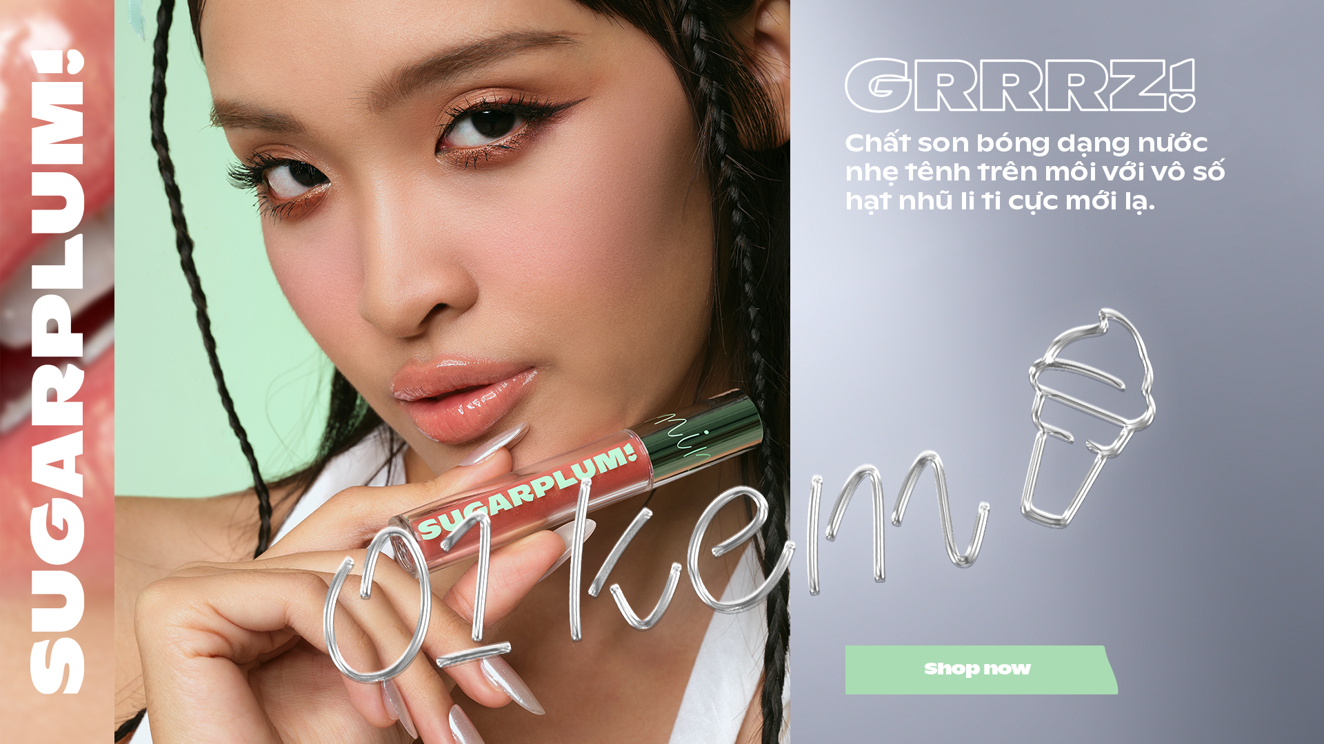 MintyIce Sparkling Gloss là son nhũ bóng thuần chay, tao hiệu ứng môi ngậm nước cũng các hạt nhũ đa sắc tạo sự nổi bật, thu hút ánh nhìn.